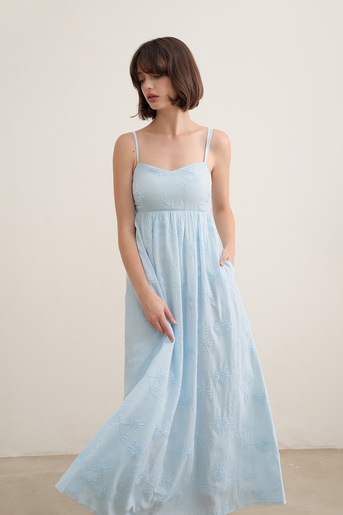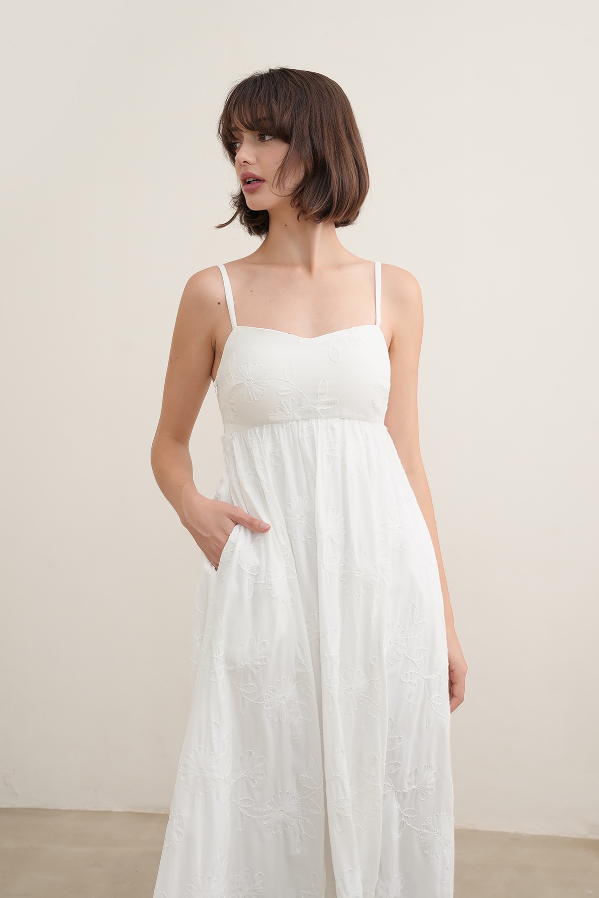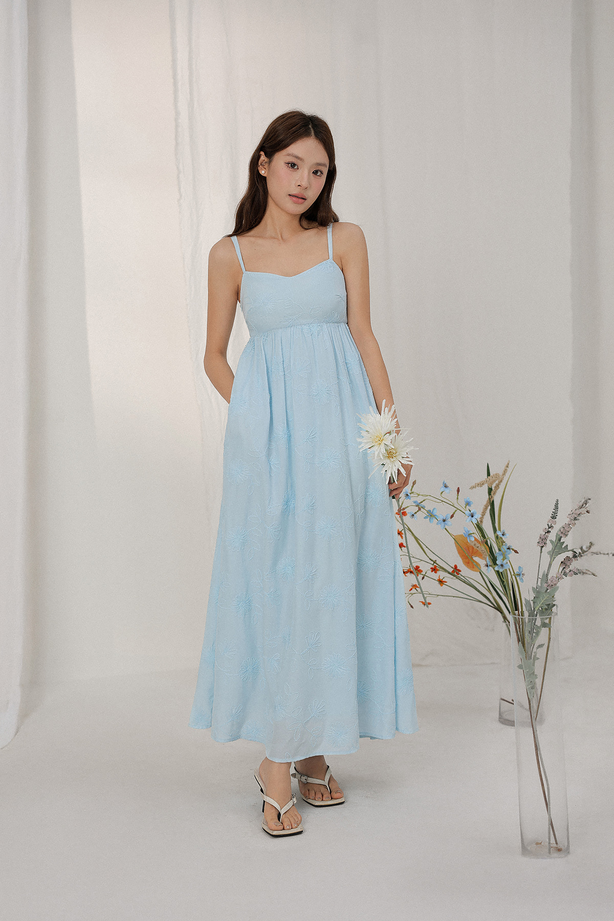 Easy, breezy, and made to twirl. This Serynne Cross Back Maxi Dress features dainty double straps, a flattering empire waist, and a tie-back detail that adds charm from behind. With side pockets and padded for extra ease, it’s the kind of dress that feels just like a sunny day.