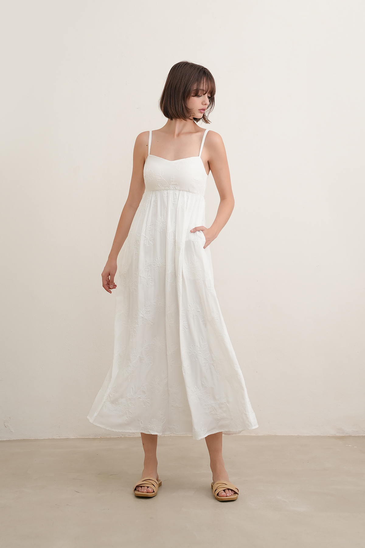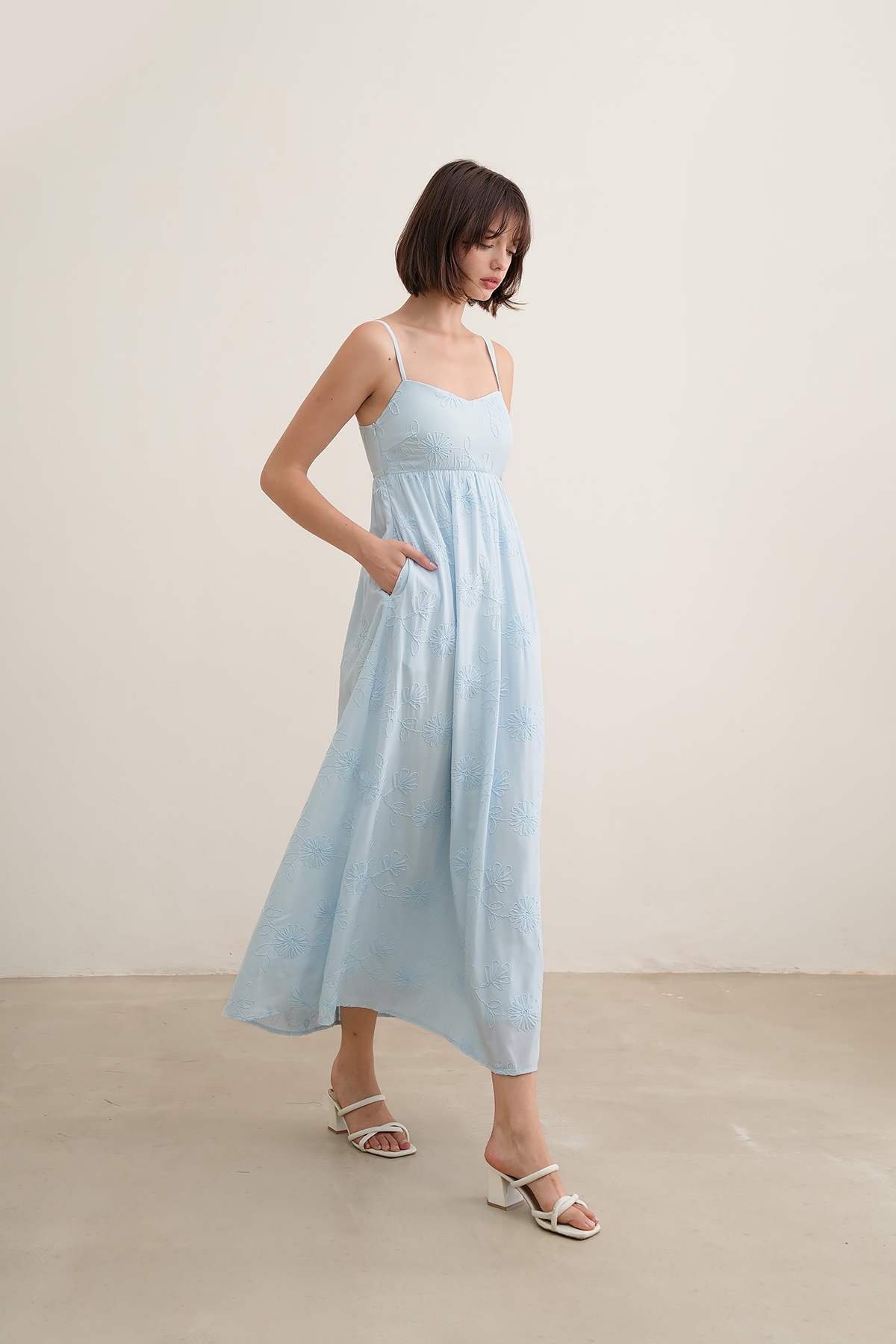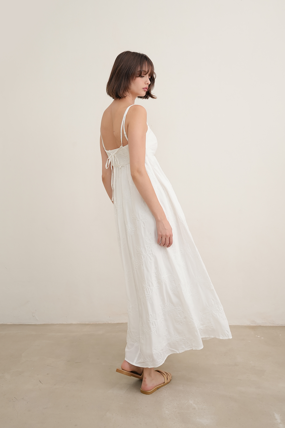 Easy, breezy, and made to twirl. This Serynne Cross Back Maxi Dress features dainty double straps, a flattering empire waist, and a tie-back detail that adds charm from behind. With side pockets and padded for extra ease, it’s the kind of dress that feels just like a sunny day.