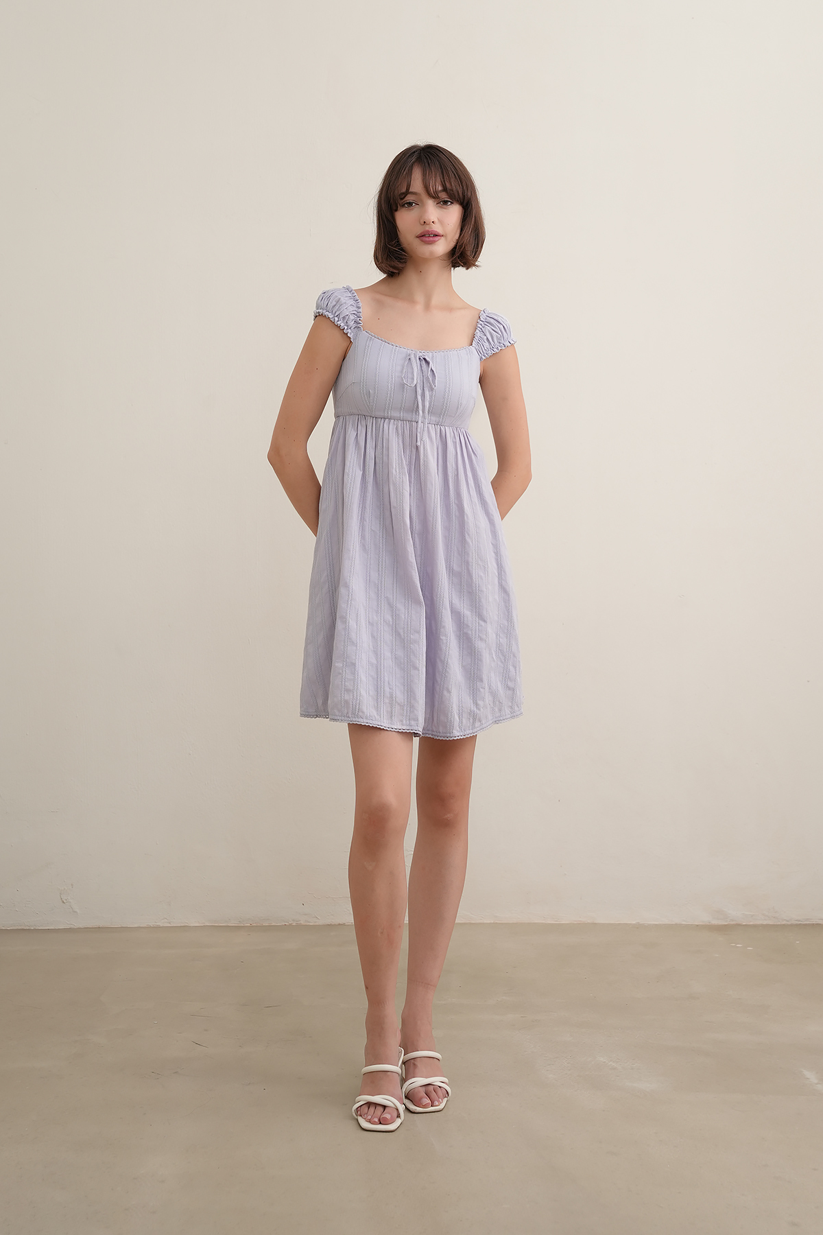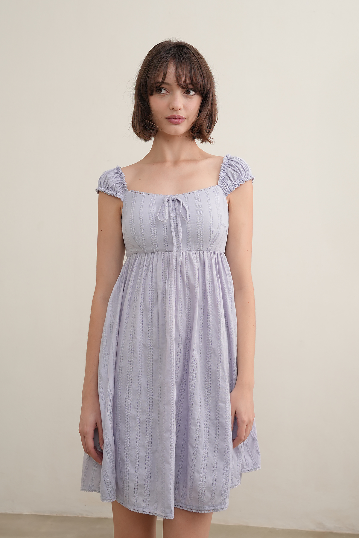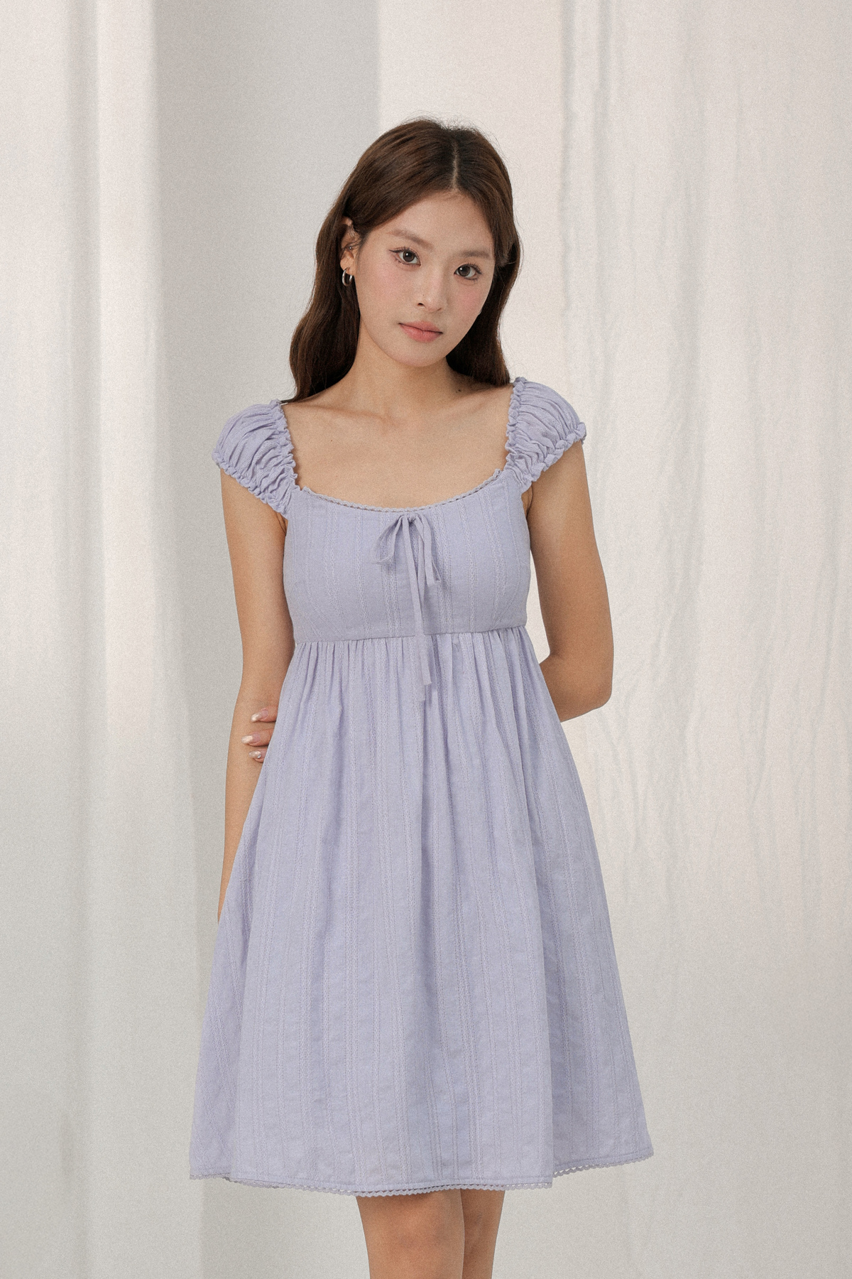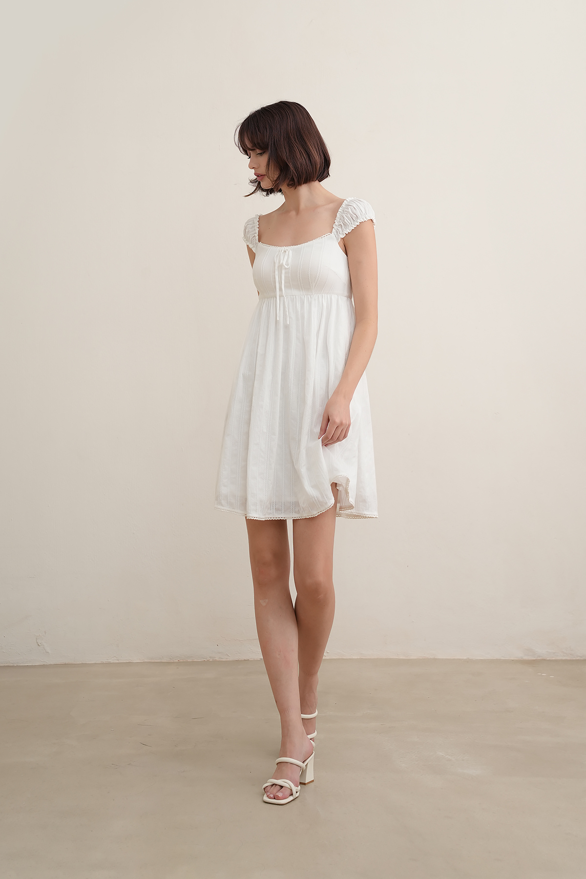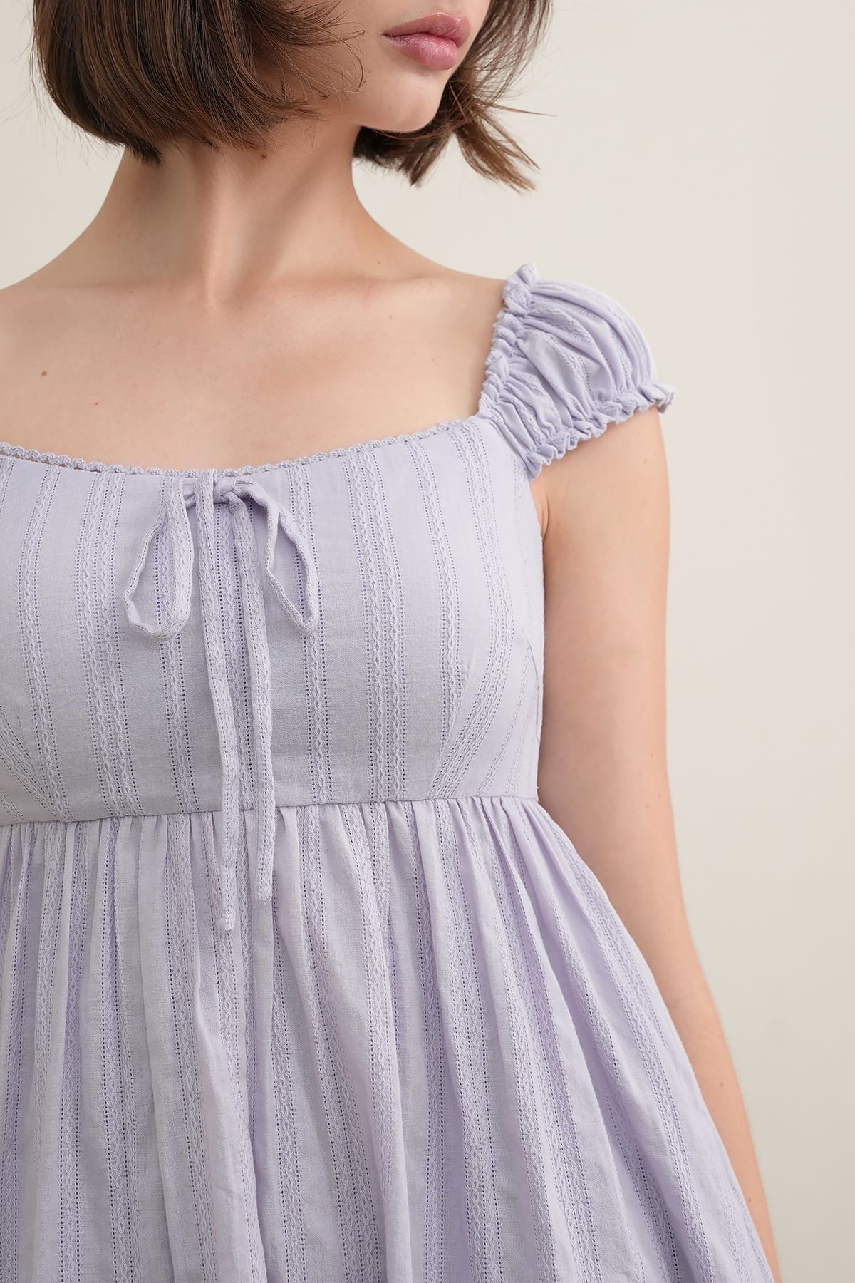 The Seraph Broderie Babydoll Dress is the epitome of sweet femininity. This babydoll dress brings the charm with broderie textures, softly gathered details, ruffled elastic sleeves, a sweet little bow and padded for ease—made for twirling through sunlit days and spontaneous plans.