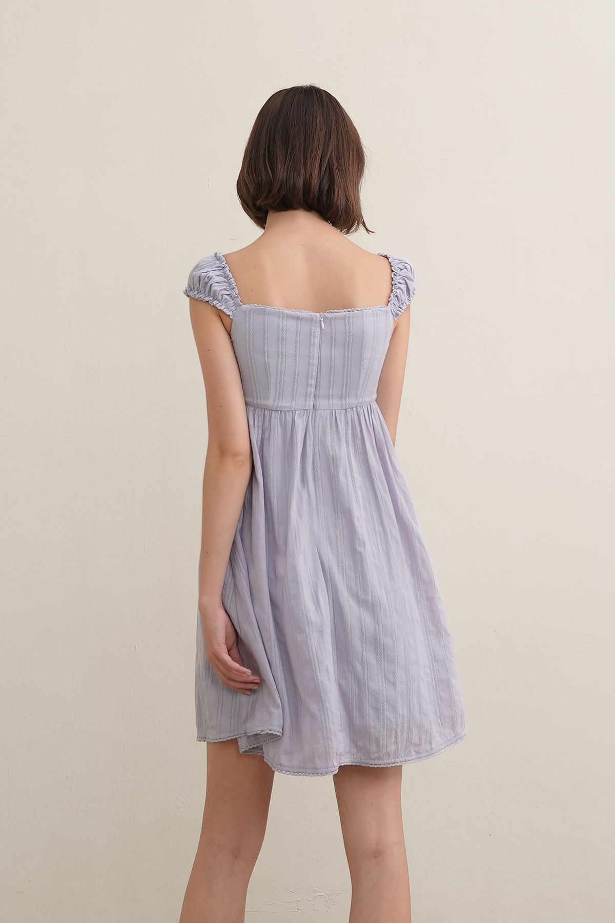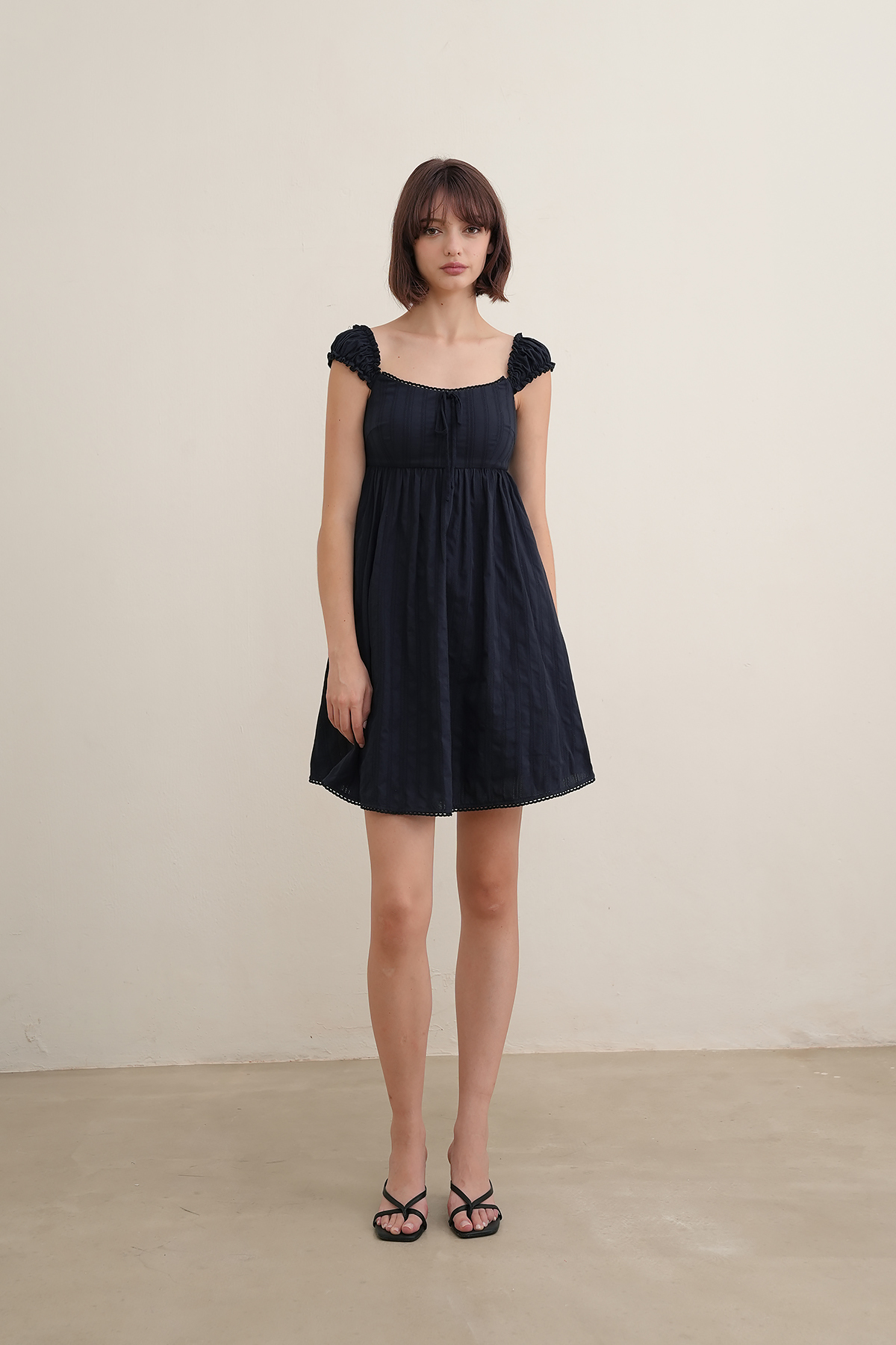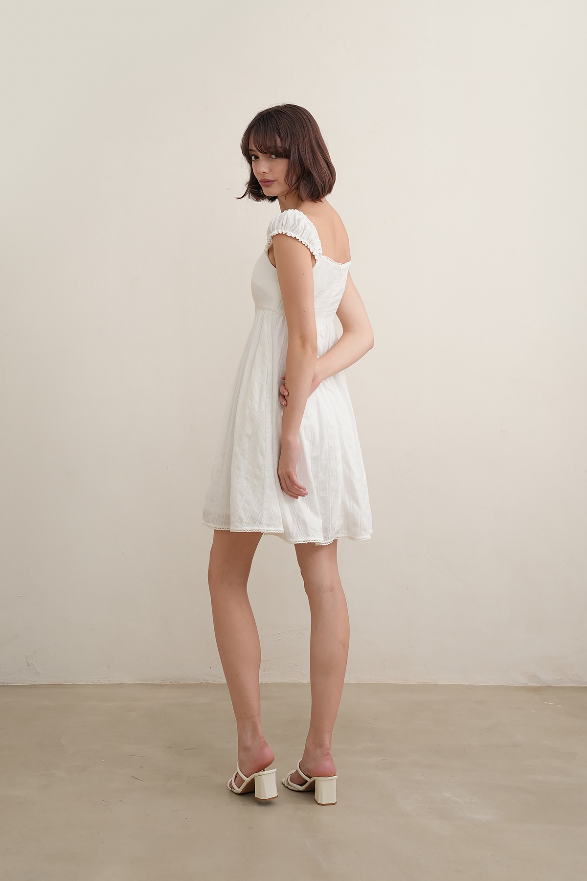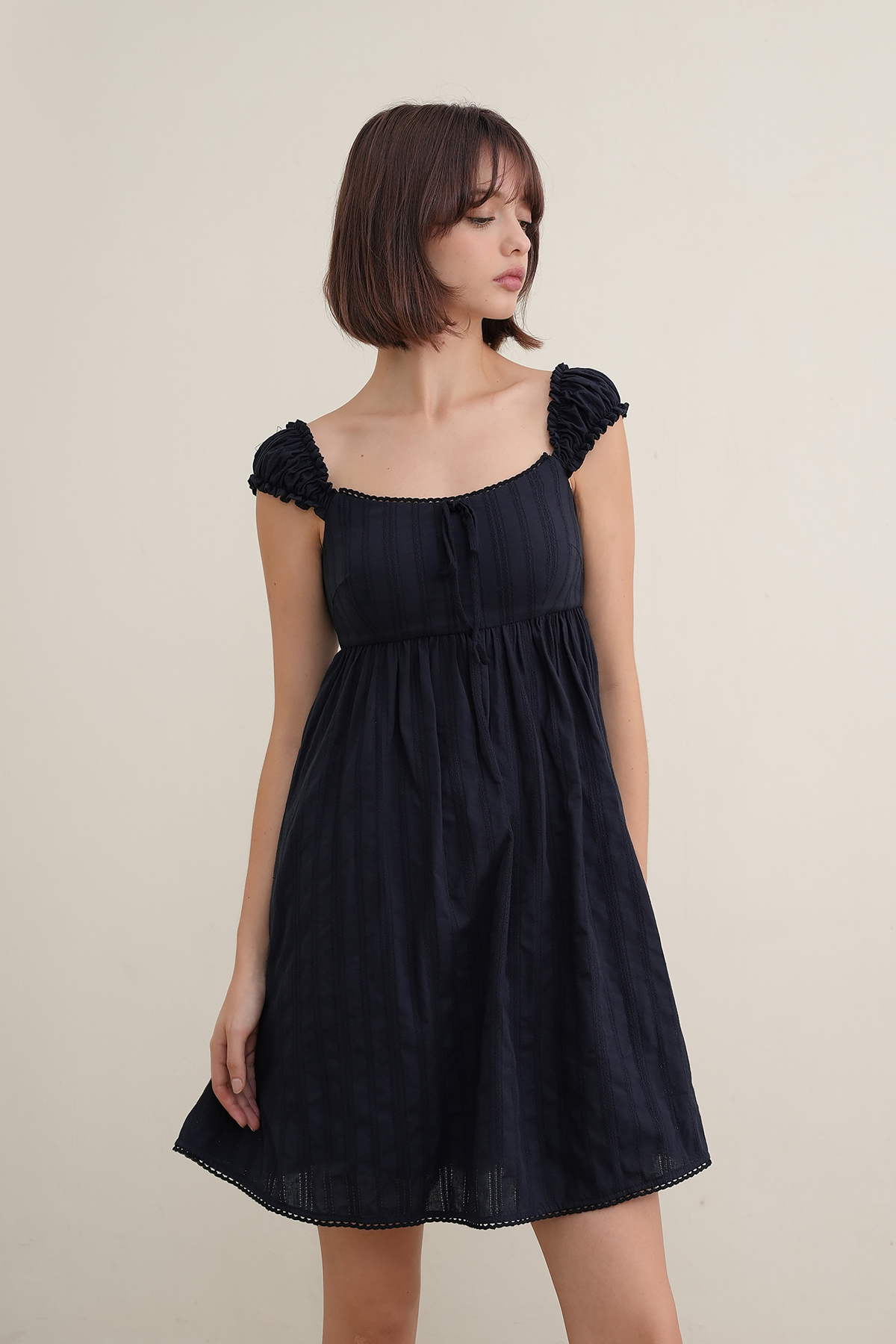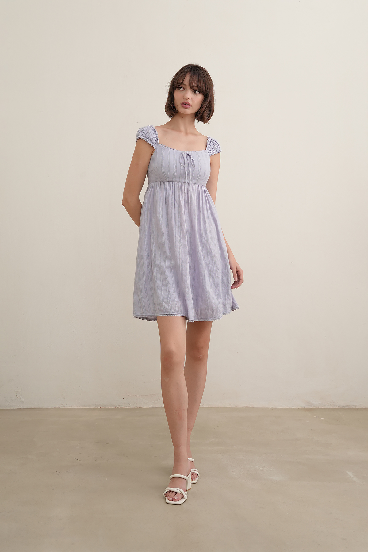 The Seraph Broderie Babydoll Dress is the epitome of sweet femininity. This babydoll dress brings the charm with broderie textures, softly gathered details, ruffled elastic sleeves, a sweet little bow and padded for ease—made for twirling through sunlit days and spontaneous plans.