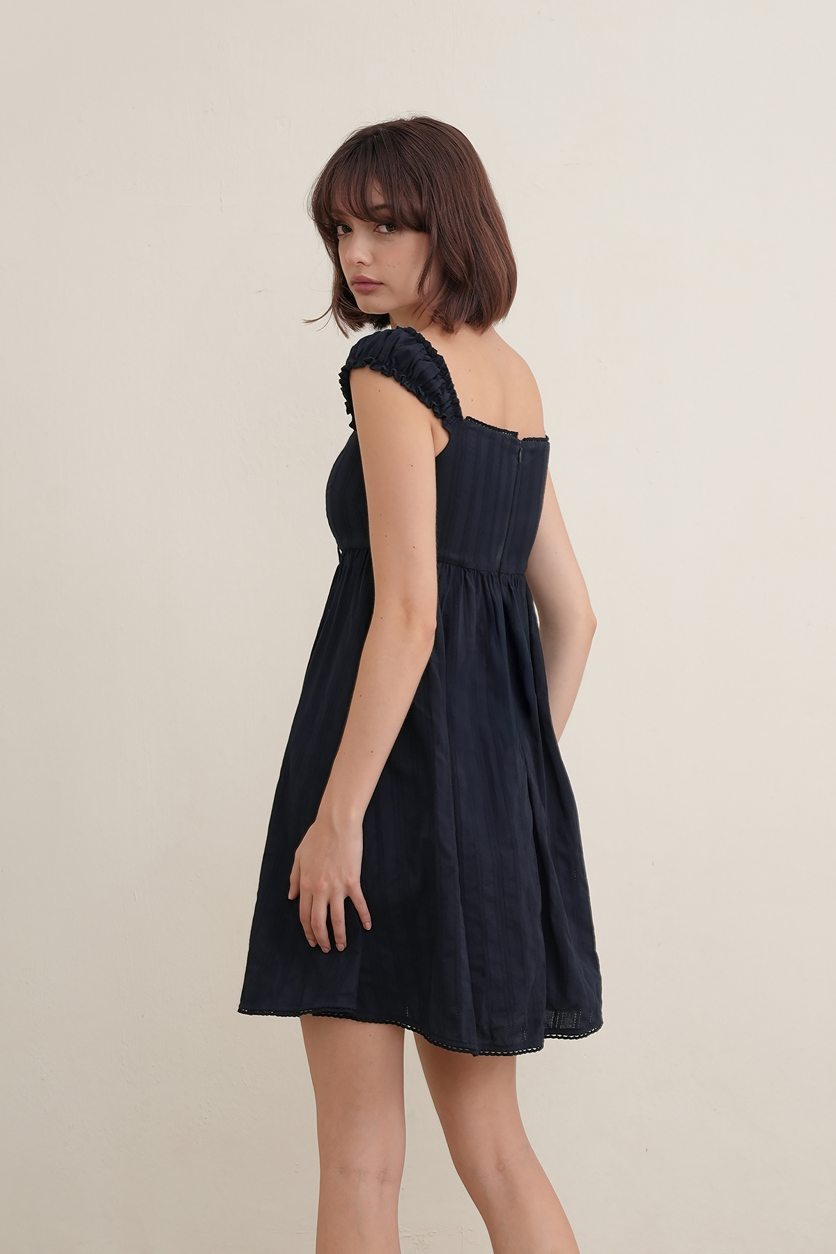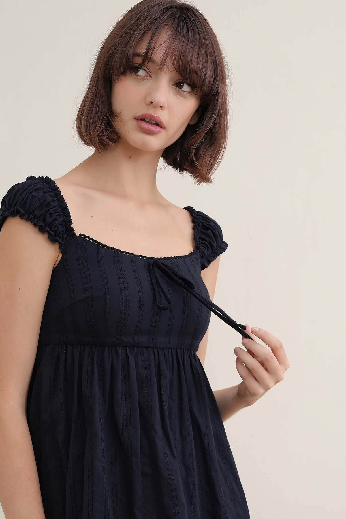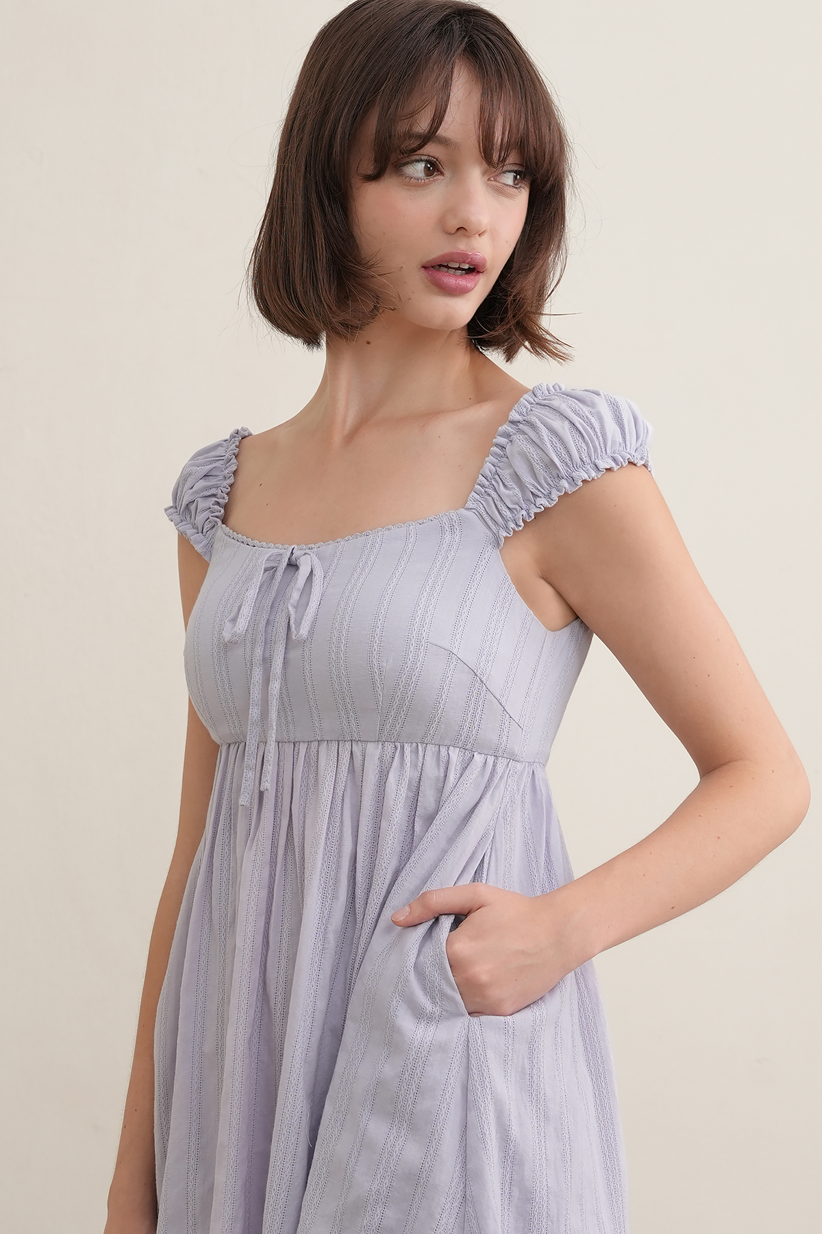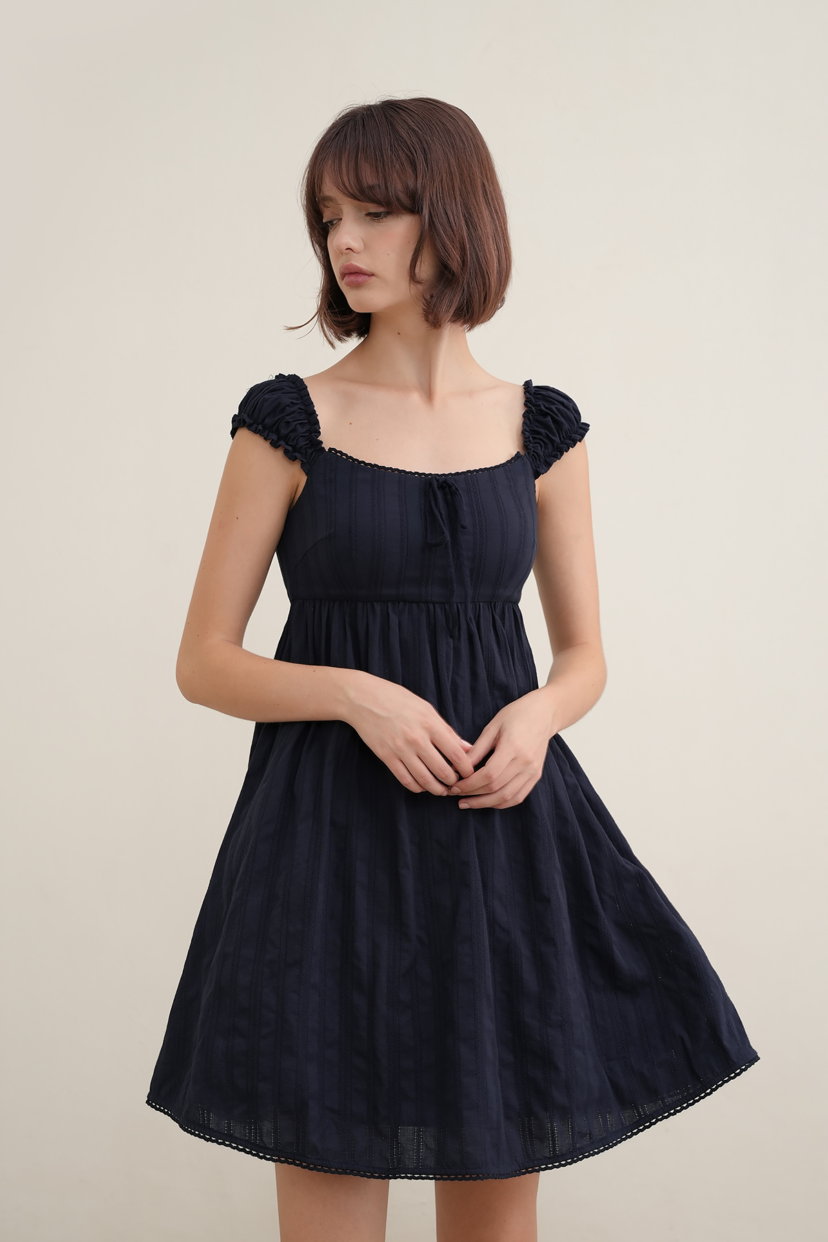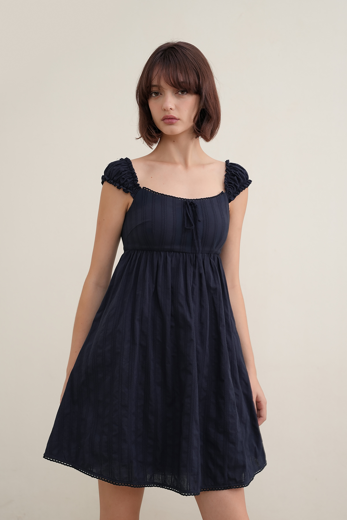 The Seraph Broderie Babydoll Dress is the epitome of sweet femininity. This babydoll dress brings the charm with broderie textures, softly gathered details, ruffled elastic sleeves, a sweet little bow and padded for ease—made for twirling through sunlit days and spontaneous plans.