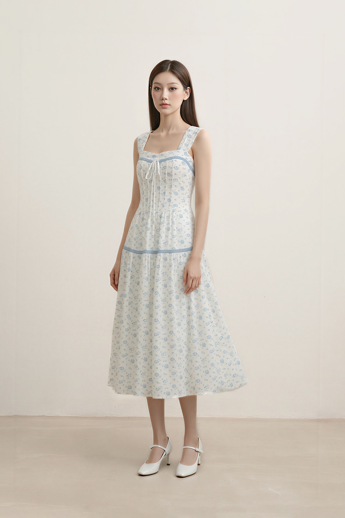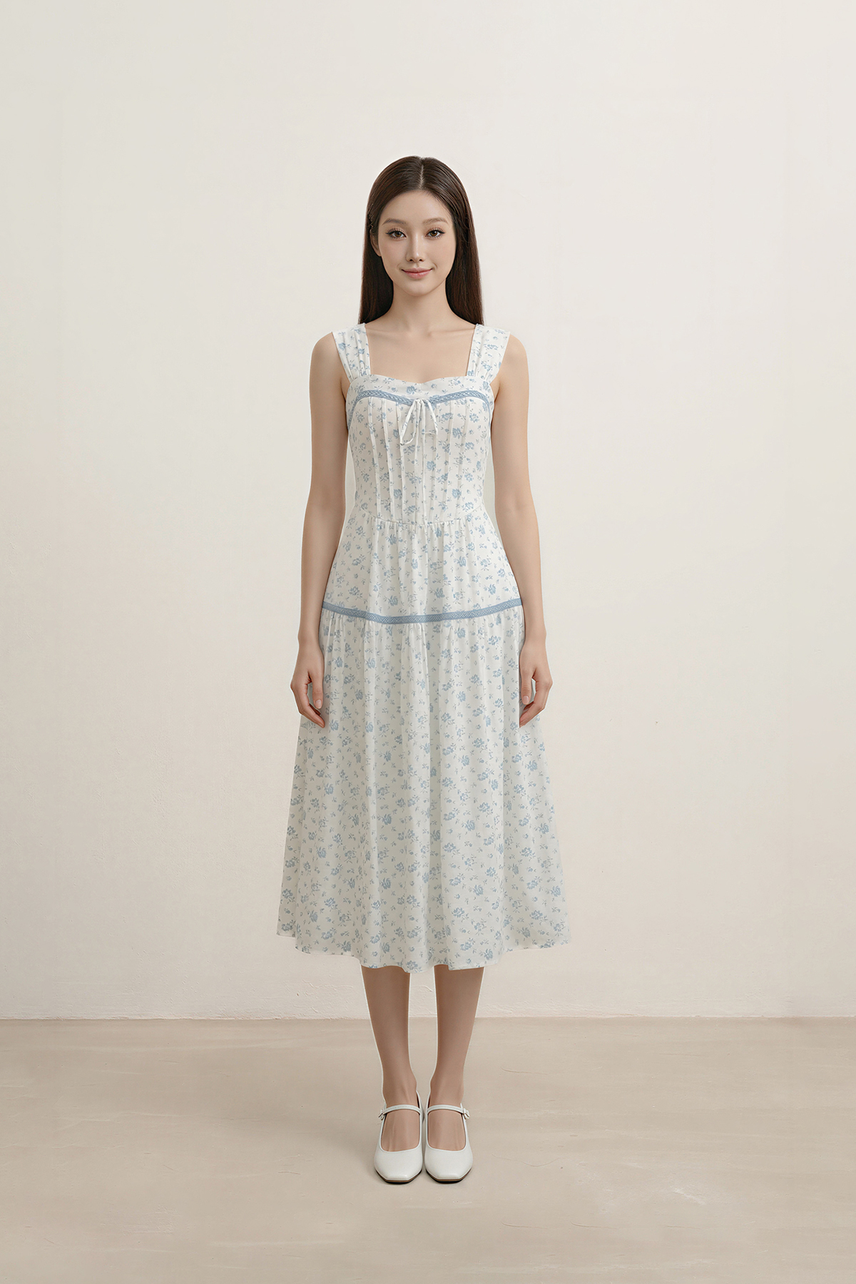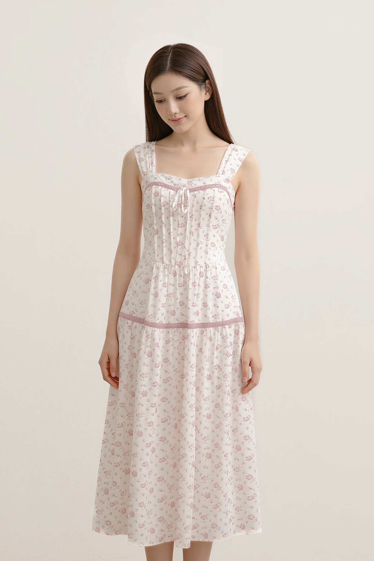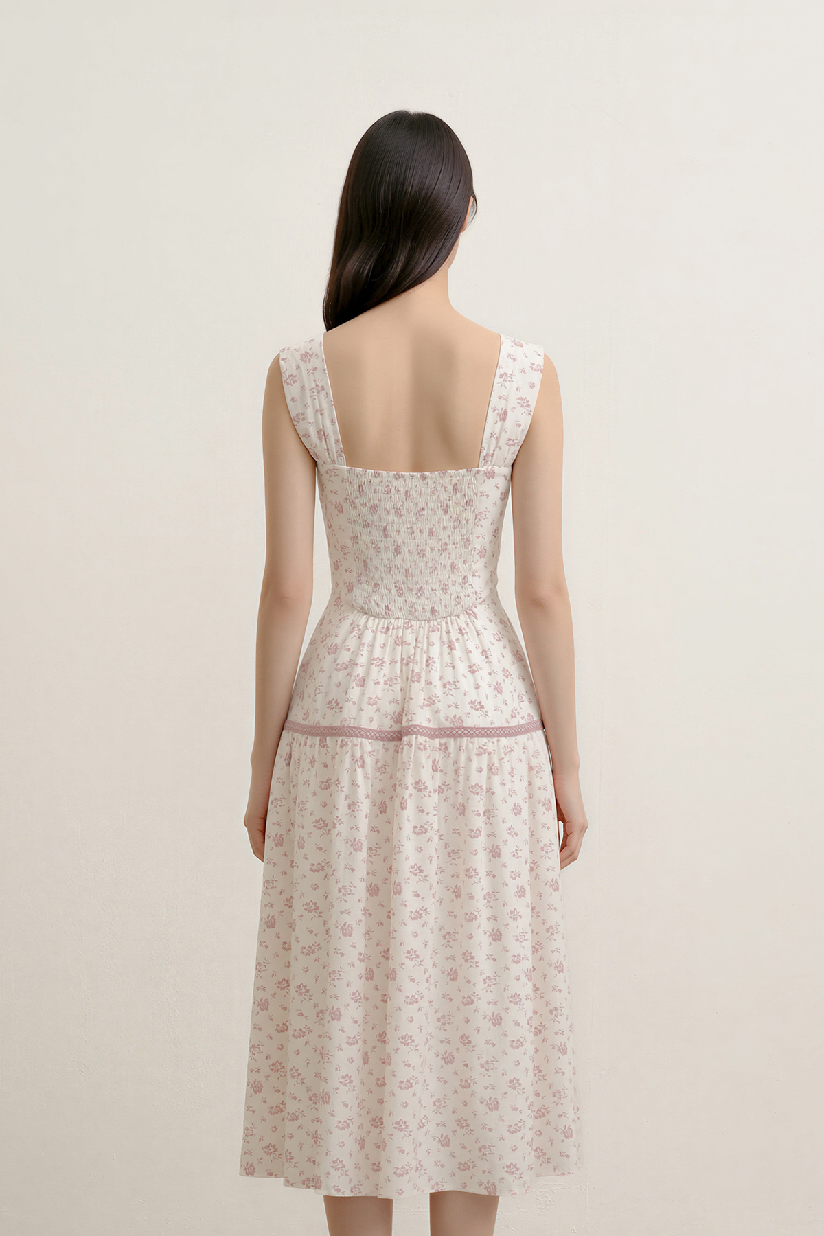 A romantic silhouette made for light, airy days. The Petale Padded Floral Midi Dress is crafted from a textured, linen-like floral fabric, finished with ruched straps and sweet picot trim accents. Cut in an easy midi length, it's a natural choice for sun-filled days, garden moments, and laid-back polish.