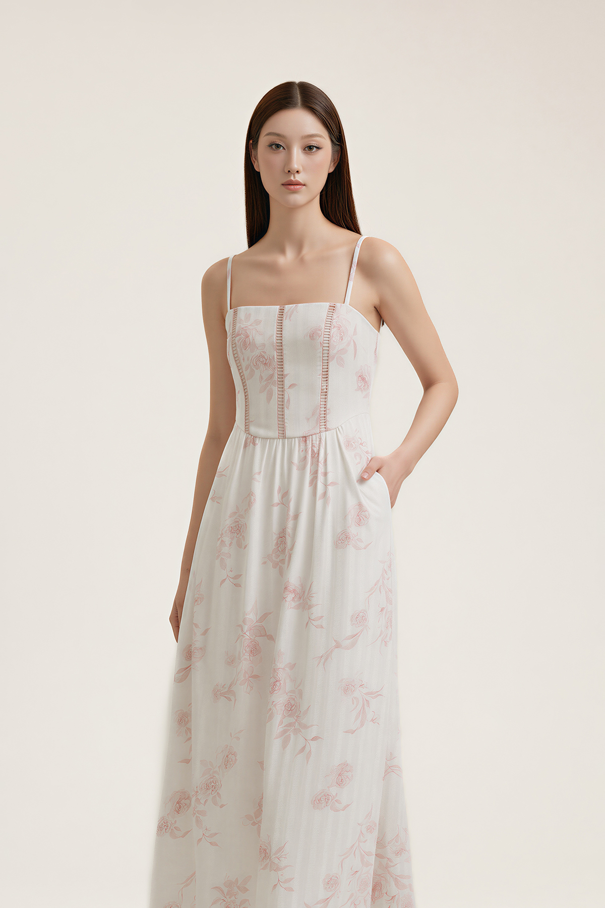 Chic with a touch of structure. Designed with a corset basque waist and removable padding, this Château Padded Corset Maxi Dress shapes beautifully and is finished with side pockets for everyday practicality.