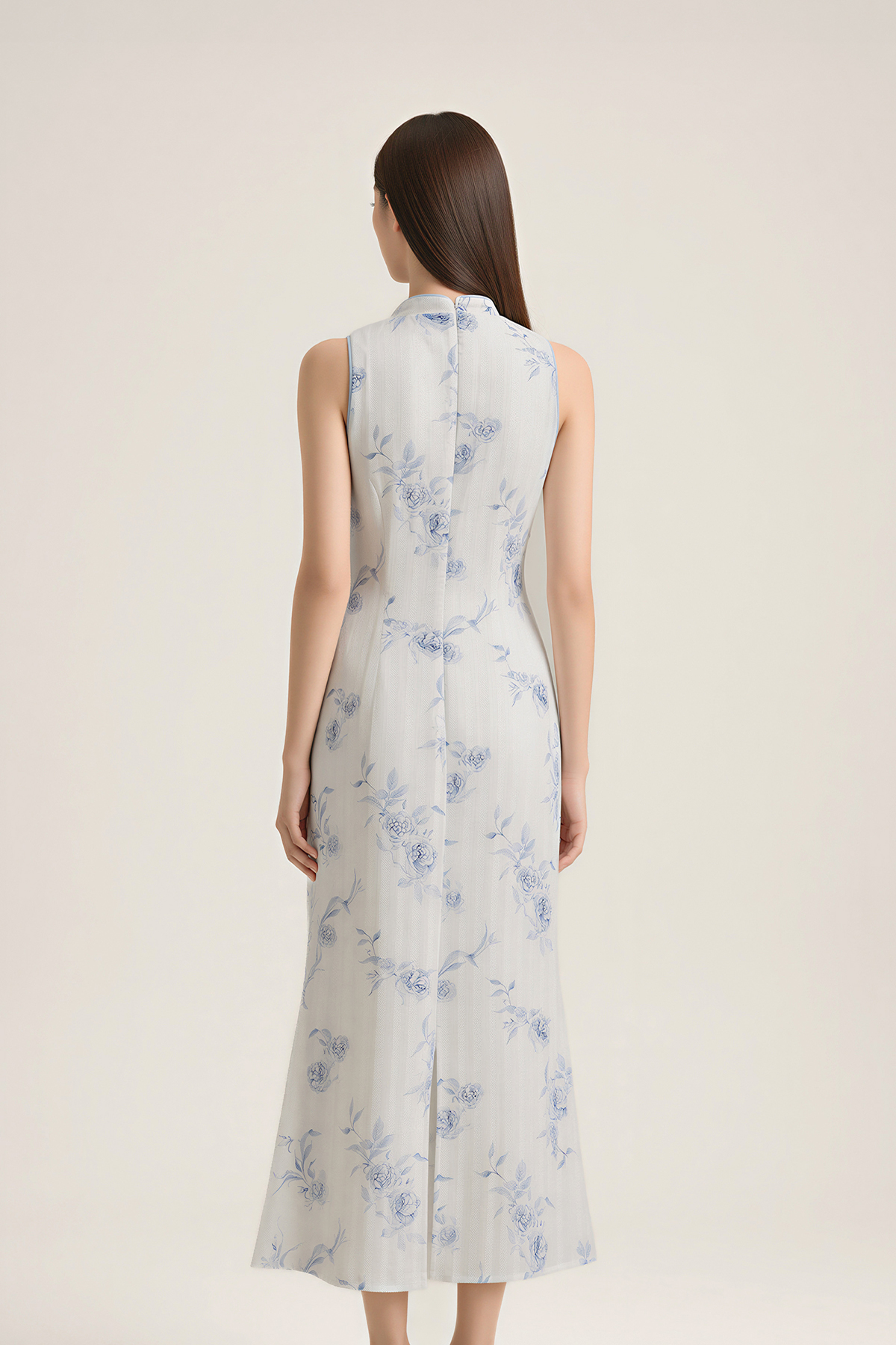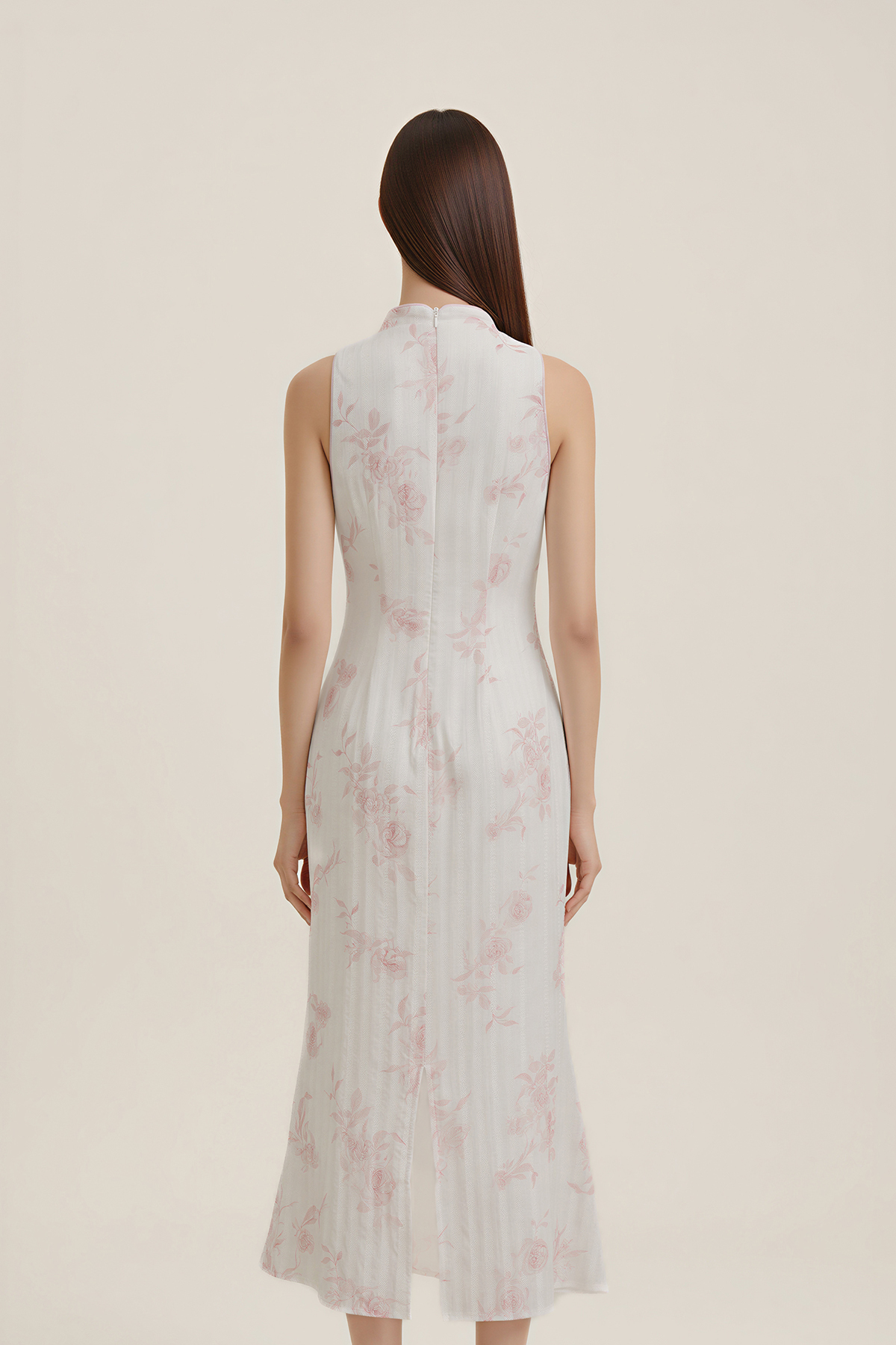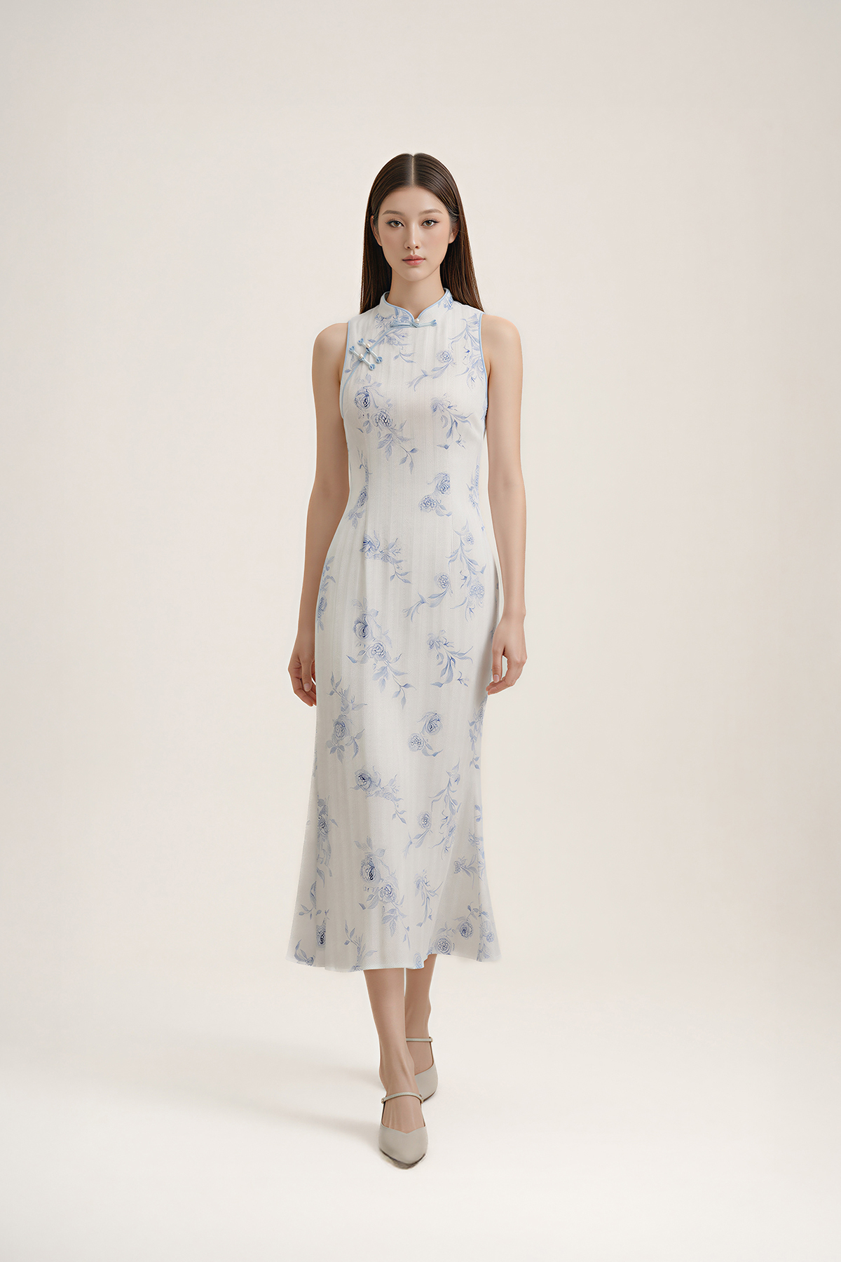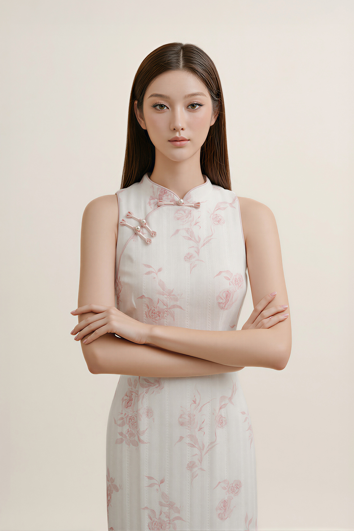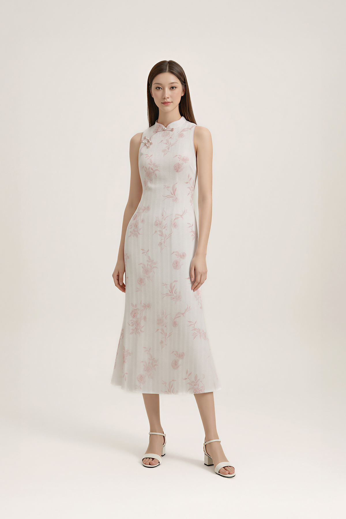 Polished, elegant, and effortlessly refined. Designed with a sleeveless cut, pearl knot buttons, and removable padding, the Poem Bias Maxi Cheongsam flows into a bias-cut skirt that moves beautifully and is equal parts elegance and comfort—perfect for festive days and beyond.