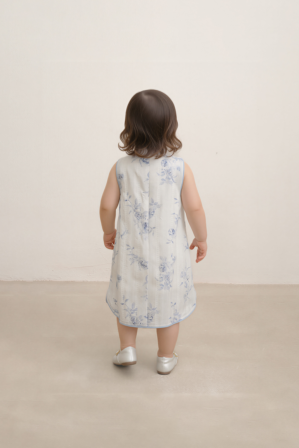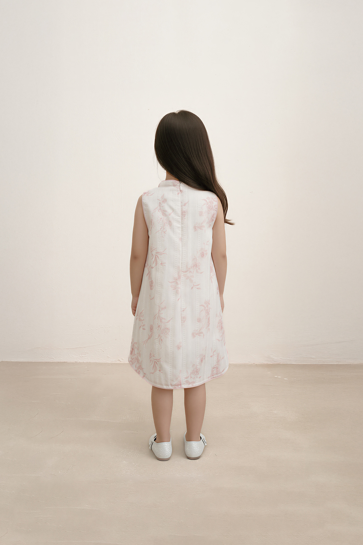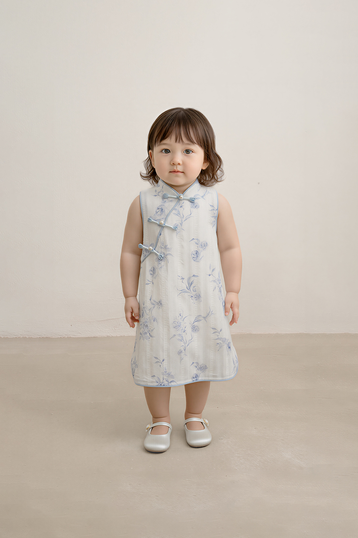 Sweet, classic, and celebration-ready. Designed with a sleeveless cut and pearl knot buttons, this cheongsam keeps little ones comfortable while looking effortlessly put together.