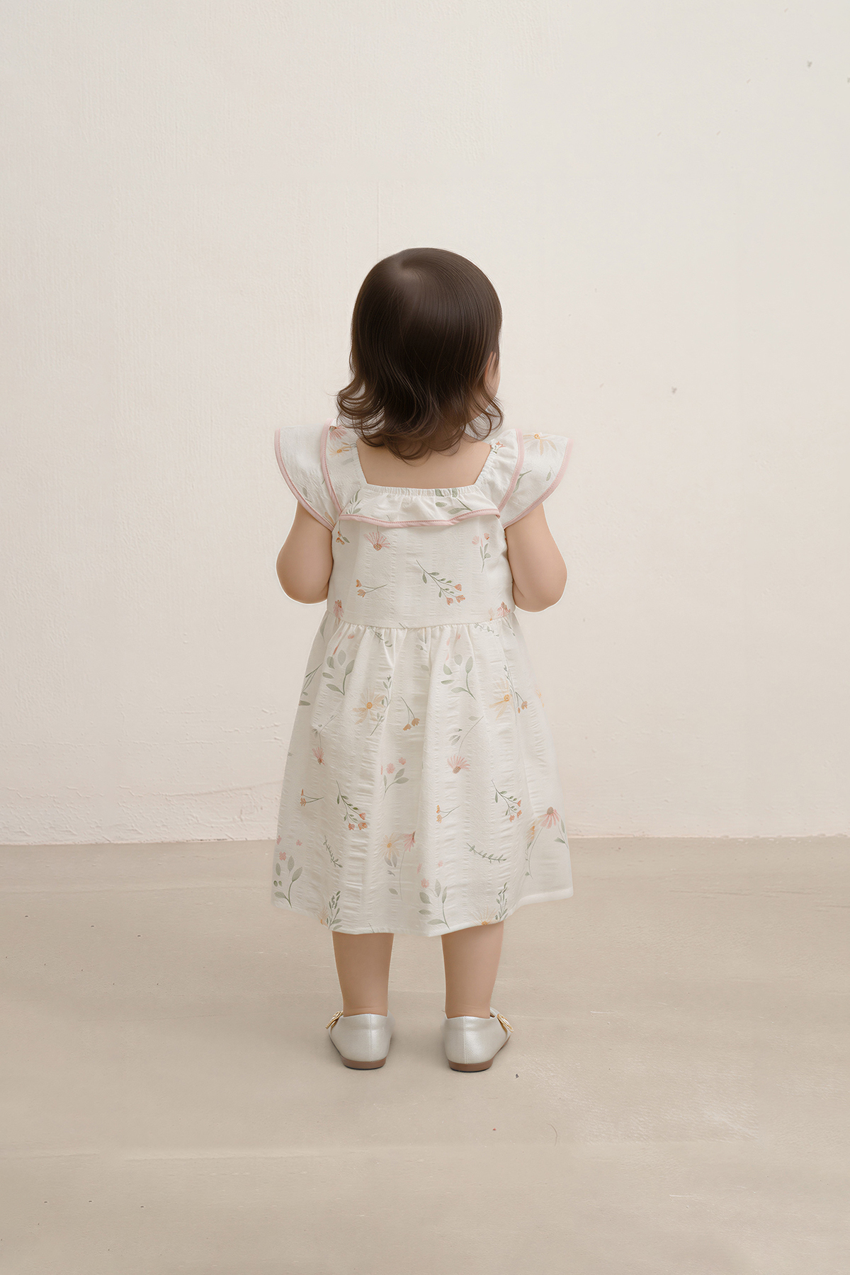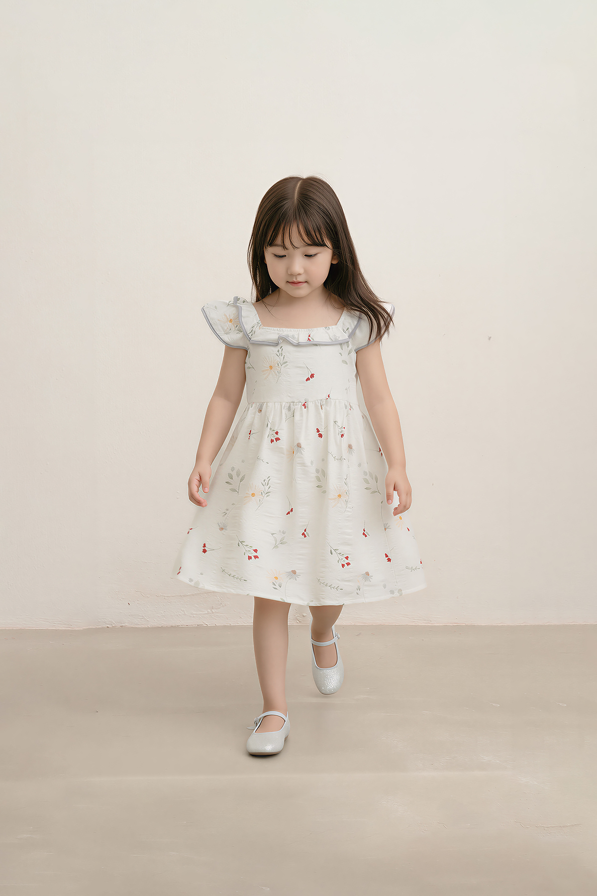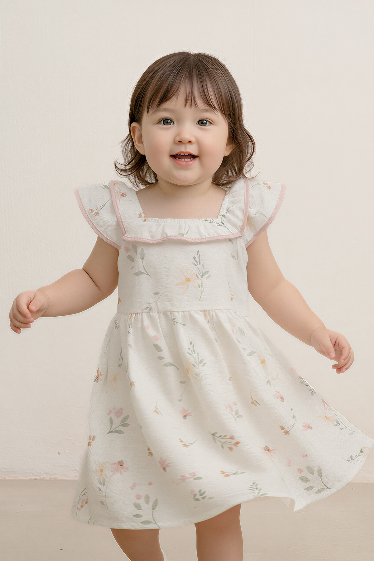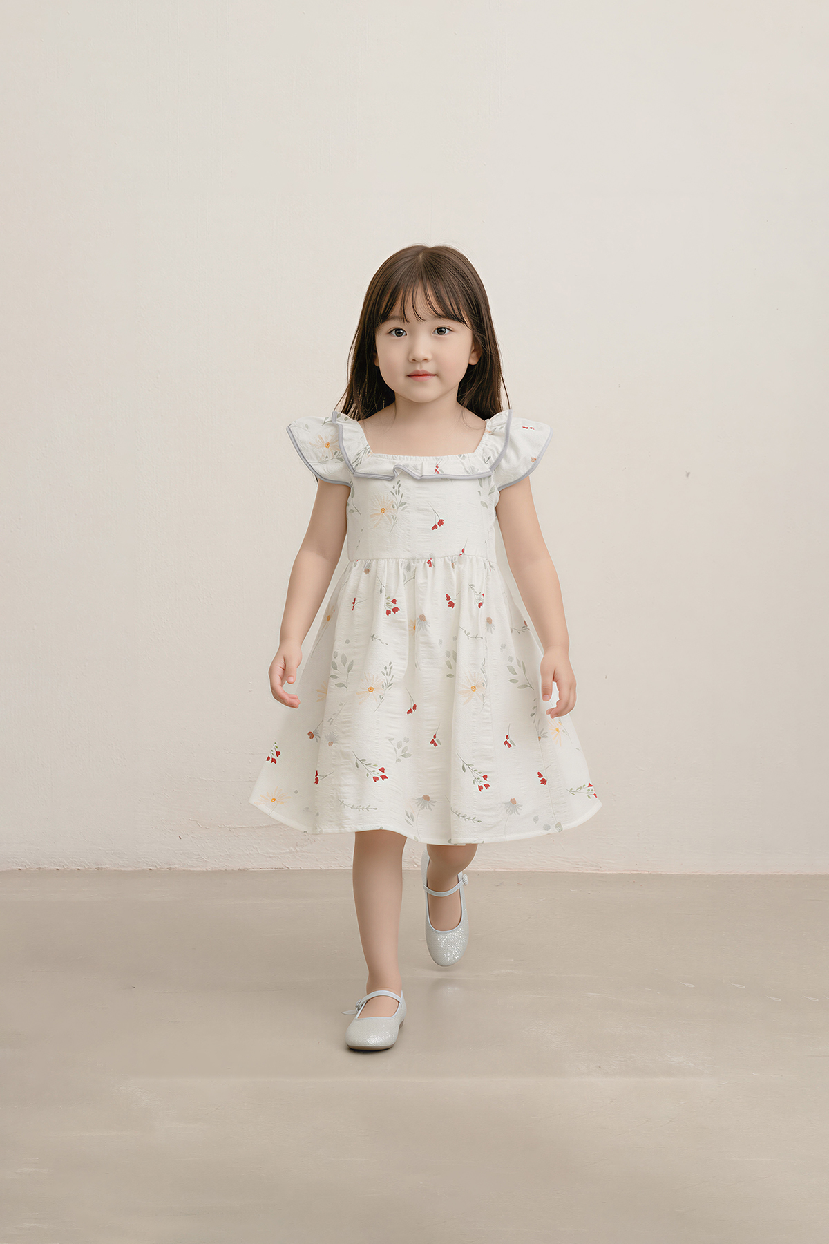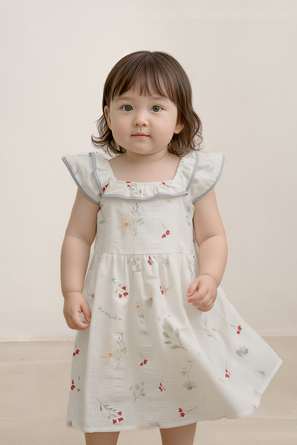 Soft, playful, and made for twirling. Designed with a ruffled neckline and a relaxed babydoll fit, this dress is light, comfy, and effortlessly charming—ideal for family twinning days.