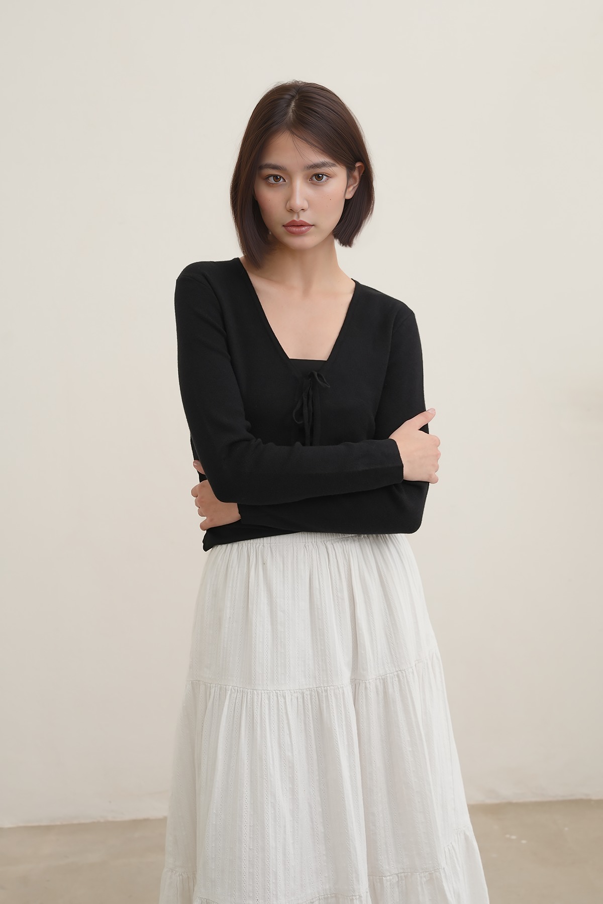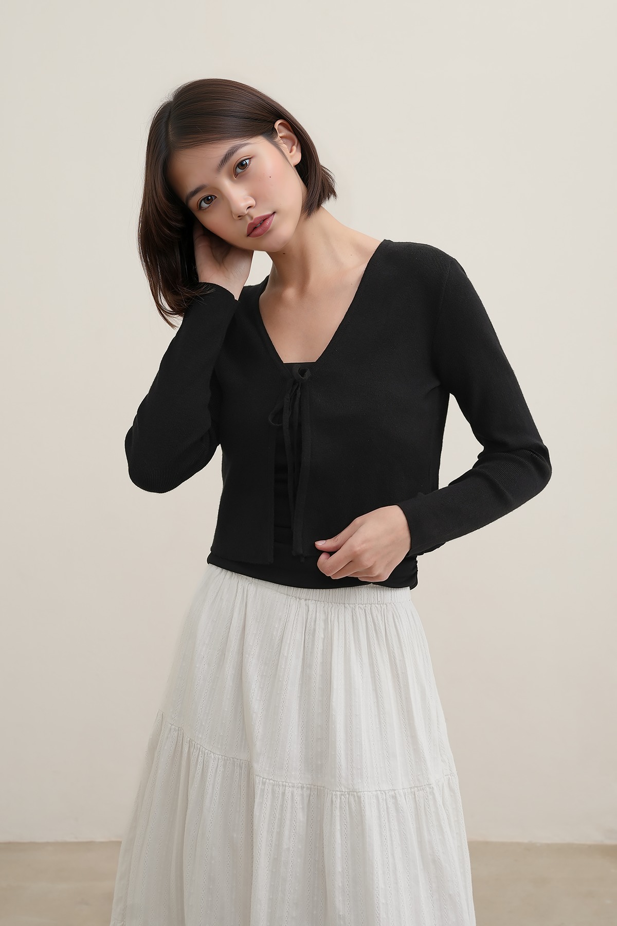 Soft, lightweight, and easy to wear—the Felicity Ribbon Knit Cardigan is your go-to layer for everyday comfort. Finished with an elegant tie-front, it feels as cozy as it looks.