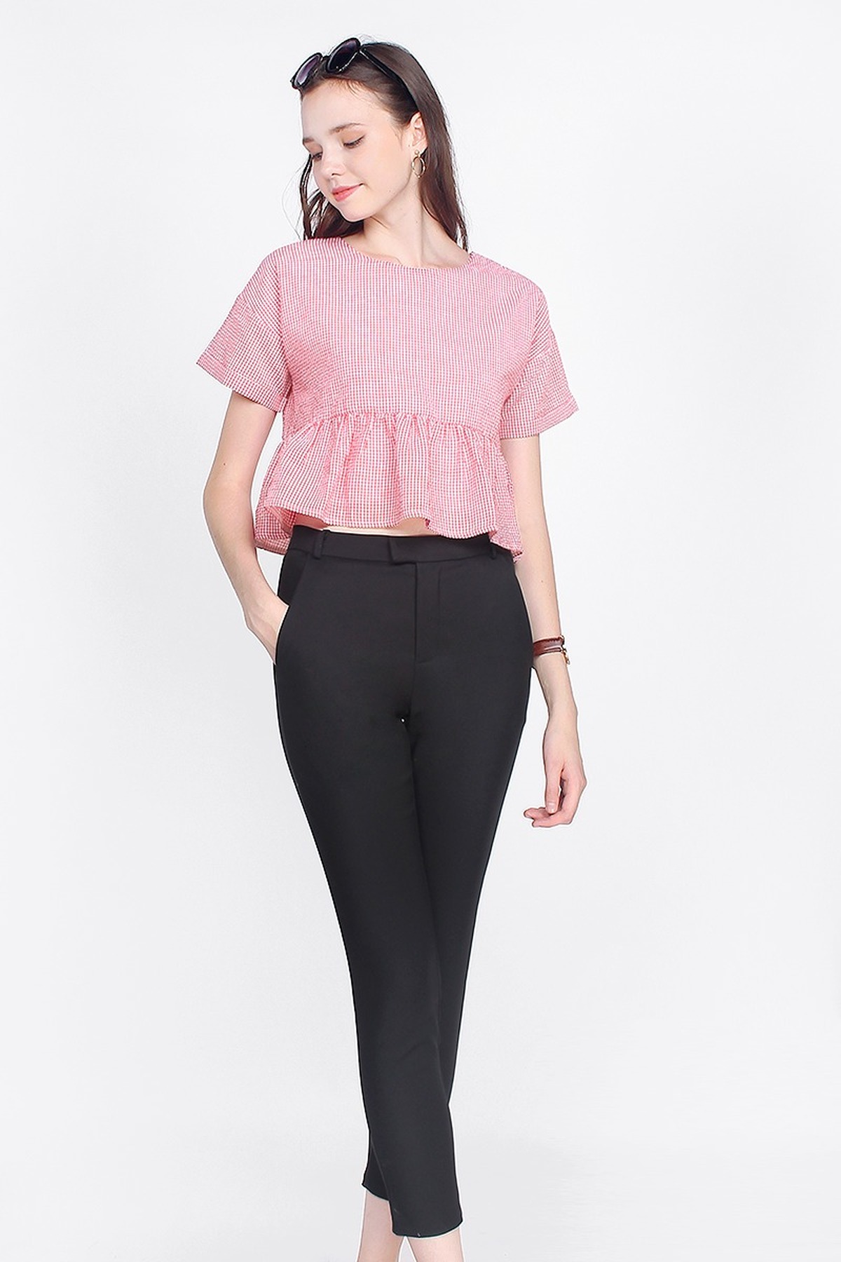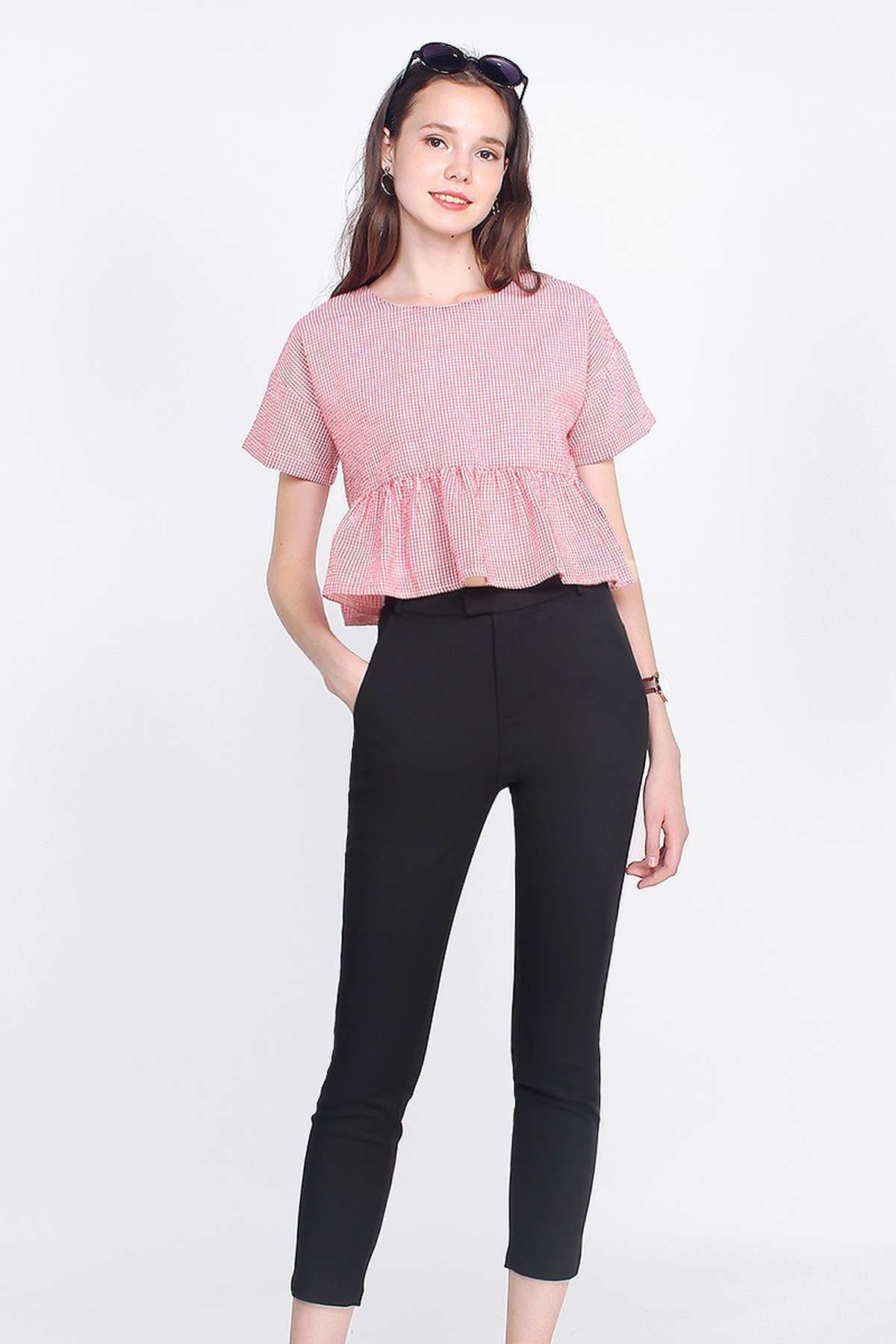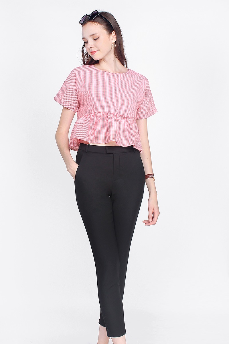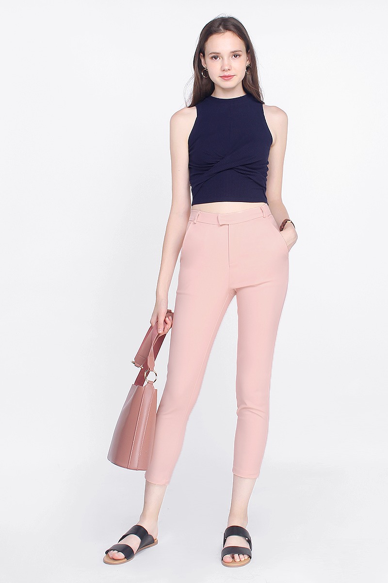Tapered towards the ankles for a structured look, bare some skin with Gledis High Waisted Cropped Pants. Sitting comfortably at the waist, she is the truly the must-have addition to your everyday wardrobe.