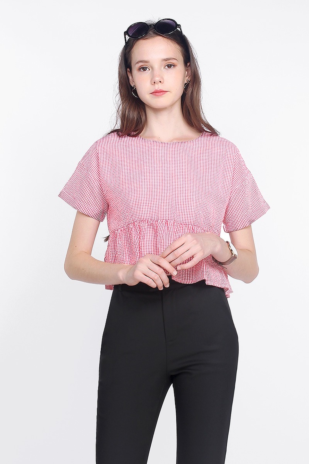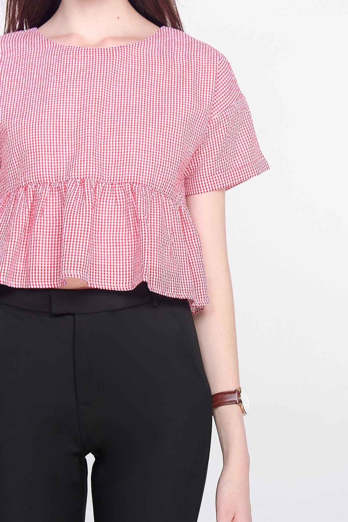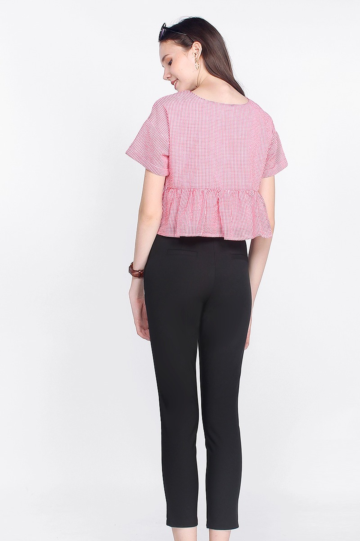 Tapered towards the ankles for a structured look, bare some skin with Gledis High Waisted Cropped Pants. Sitting comfortably at the waist, she is the truly the must-have addition to your everyday wardrobe.