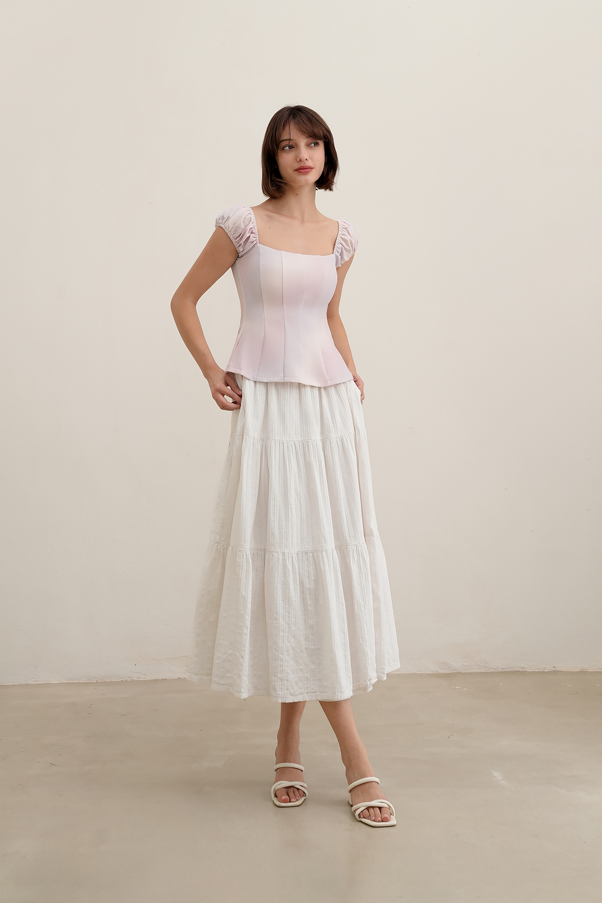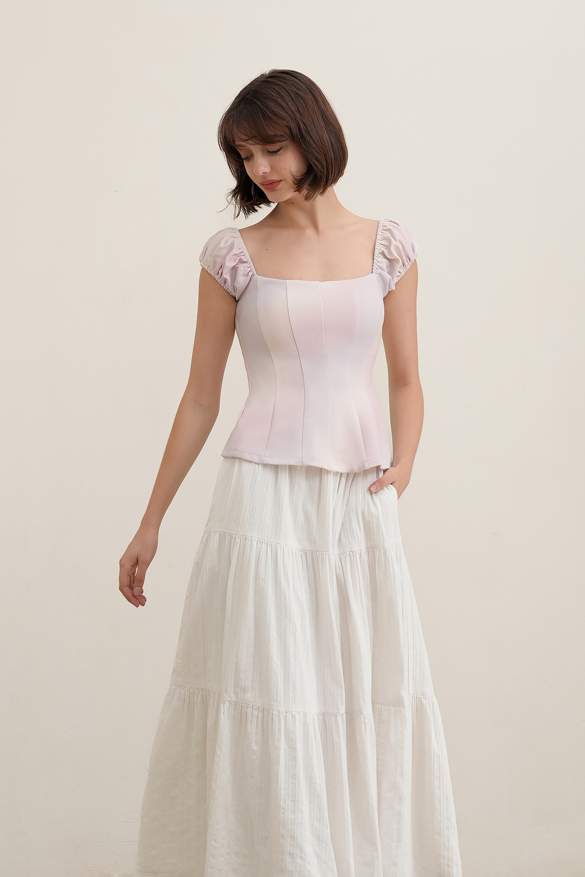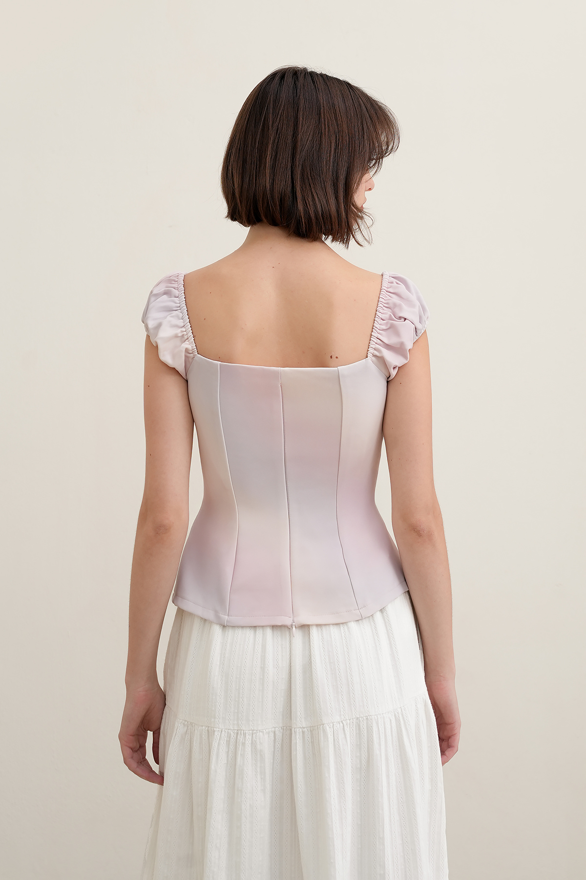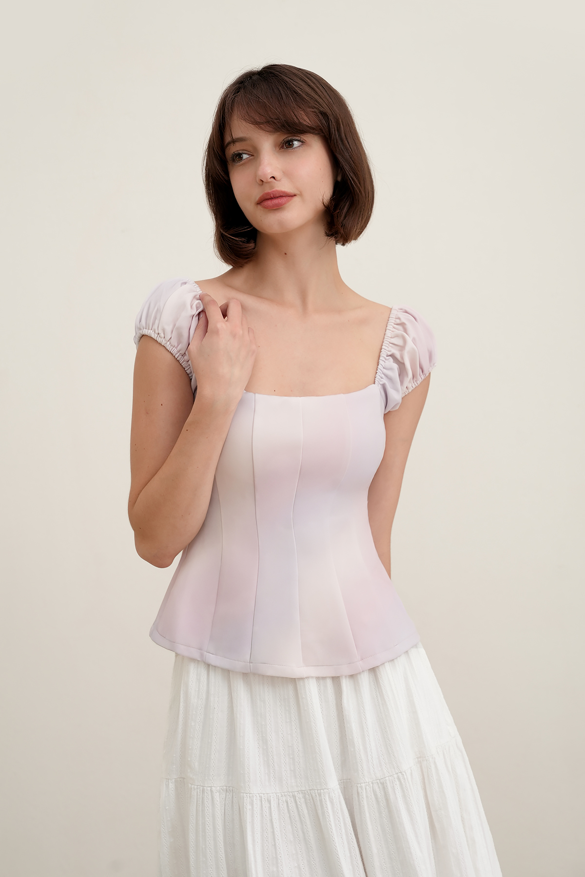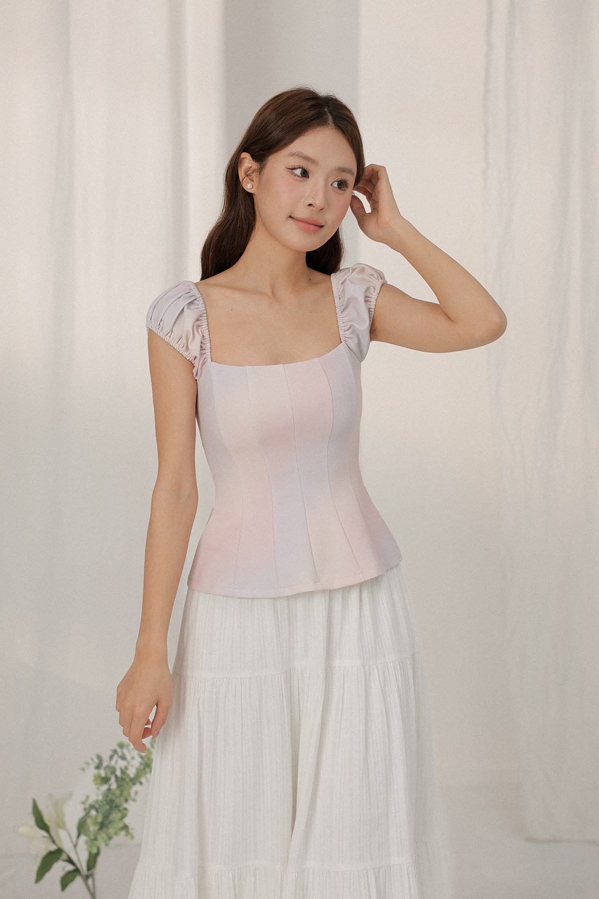 Sunset shades, meet everyday ease. This Daydream Panelled Top features a fitted bodice, soft elastic cap sleeves, and dreamy hues that go from golden hour to coffee runs—just throw on and glow.